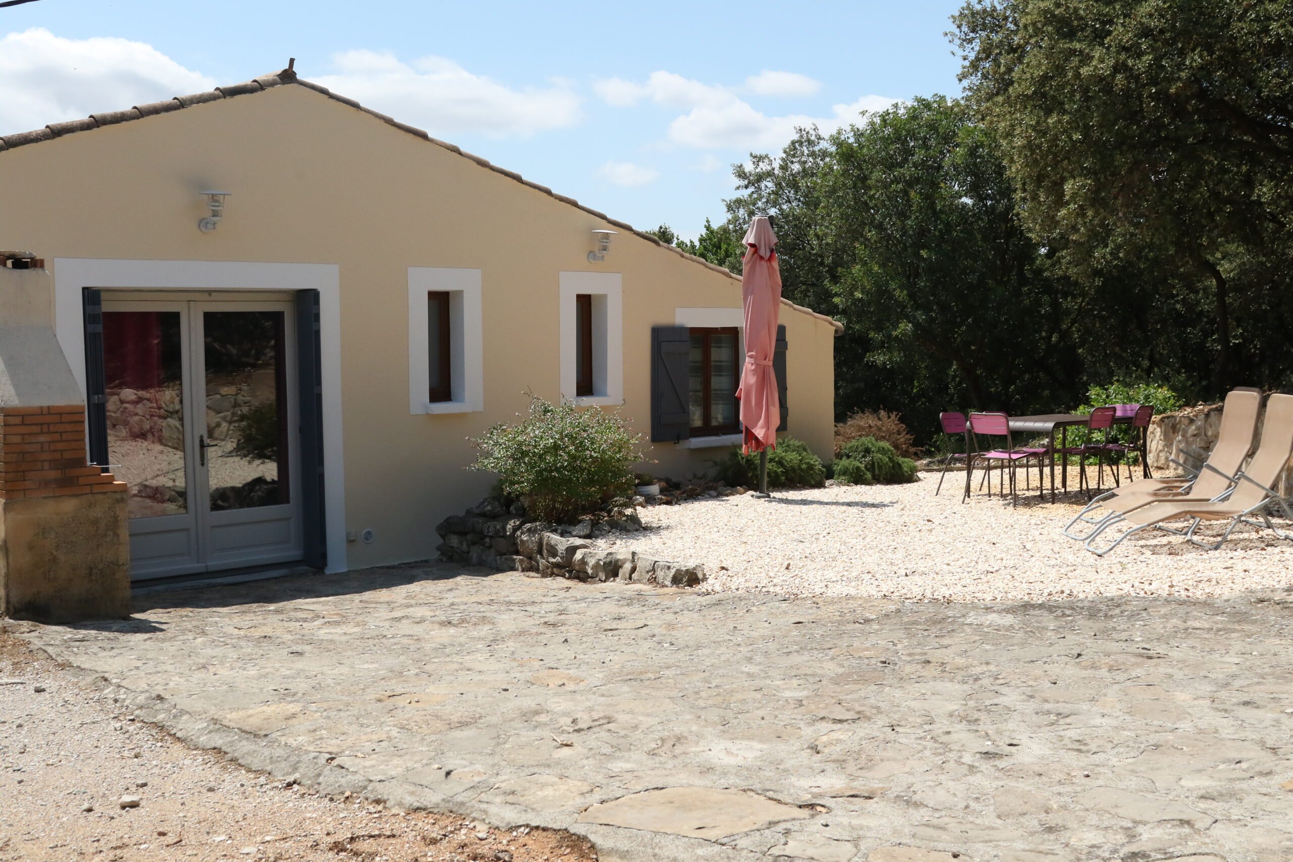Maison indépendante, 90 m2 de plain pied, entièrement rénovée, climatisée. Niché en lisière d’un bois de chêne, vous y trouverez calme, détente et confort.